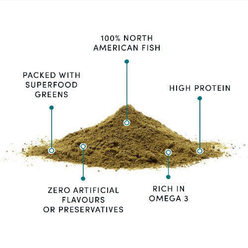 • Ces flocons de poisson avec superaliment vert sont une garniture polyvalente, riche en protéines et nutriments qui ajoute du piquant aux croquettes, aux repas et aux gâteries de votre chien !