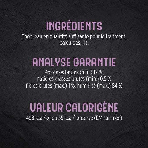Votre animal de compagnie mérite ce qu’il y a de mieux, c’est pourquoi la nourriture Tonno Con Vongole est exempte de colorants, d’arômes et d’agents de conservation artificiels. C’est plus qu’un repas, c’est une déclaration d’amour, assurant ainsi un repas complet et équilibré pour votre animal de compagnie.