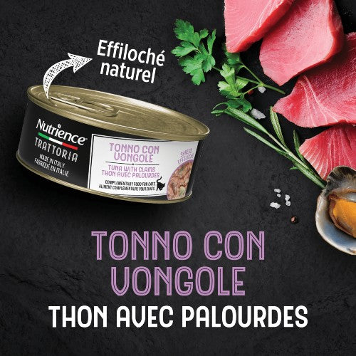 Faites l’expérience du vrai goût de l’Italie à chaque bouchée en régalant votre chat de la nourriture Nutrience Trattoria Tonno Con Vongole et en le laissant savourer chaque arôme de l’amore!