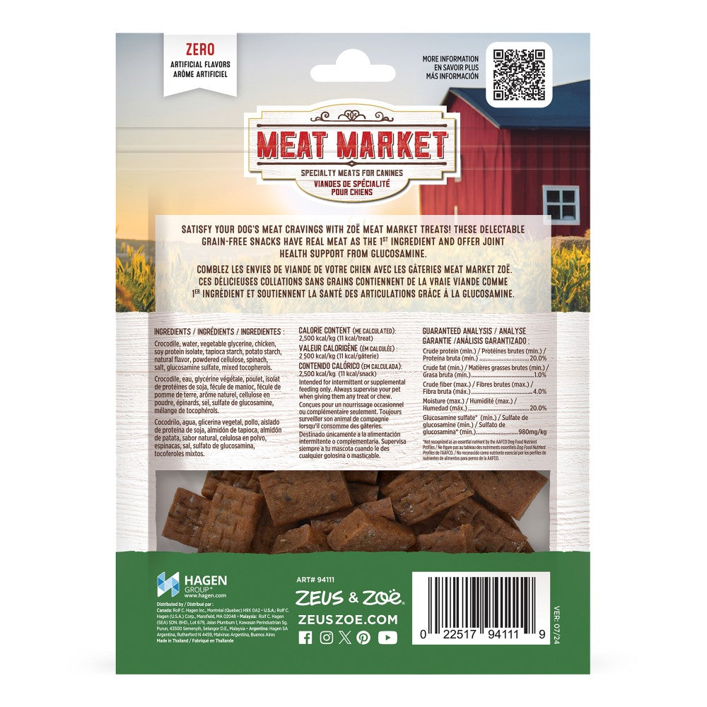 Comblez les envies de viande de votre chien avec les gâteries Meat Market Zoë — ces délicieuses collations sans grains contiennent de la viande de haute qualité comme ingrédient principal et favorisent la santé des articulations grâce à la glucosamine.