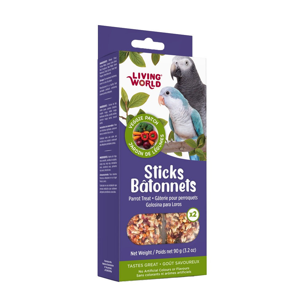 Les bâtonnets Living World pour perroquets de petite à moyenne taille sont faits à la main avec des graines et des céréales naturelles et d’autres ingrédients savoureux, puis séchés à l’air pour préserver nutriments et fraîcheur.