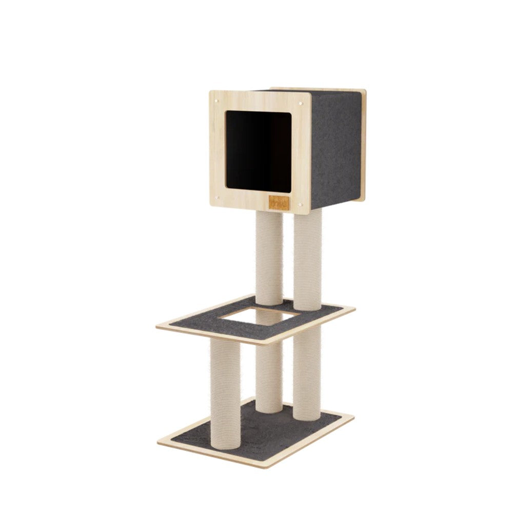 • Tapis en Feutre Ultra-Résistant : Les plateformes et la cachette sont recouvertes d'un tapis en feutre ultra résistant. Ce matériau est non seulement confortable pour que votre chat puisse s'y prélasser, mais offre également une excellente surface pour faire ses griffes, garantissant ainsi une utilisation durable.